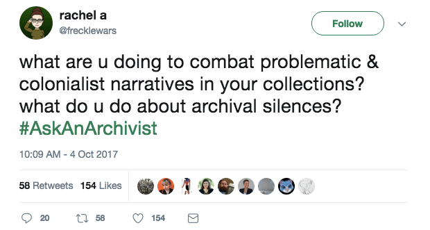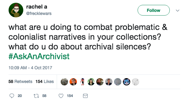 #AskAnArchivist2017_@frecklewarts Previous Next Published October 5, 2017 at 620 × 331 in #AskAnArchivist Day 2017 Summary