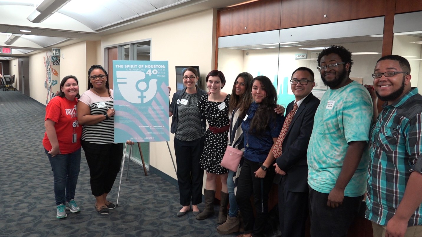 NWC_UHconference_studentexhibit1 Previous Next Published November 17, 2017 at 1432 × 805 in The National Women’s Conference: Taking 1977 into the 21st Century Students with their professor in front of the student-curated exhibit. Photo courtesy of Regina Vitolo.