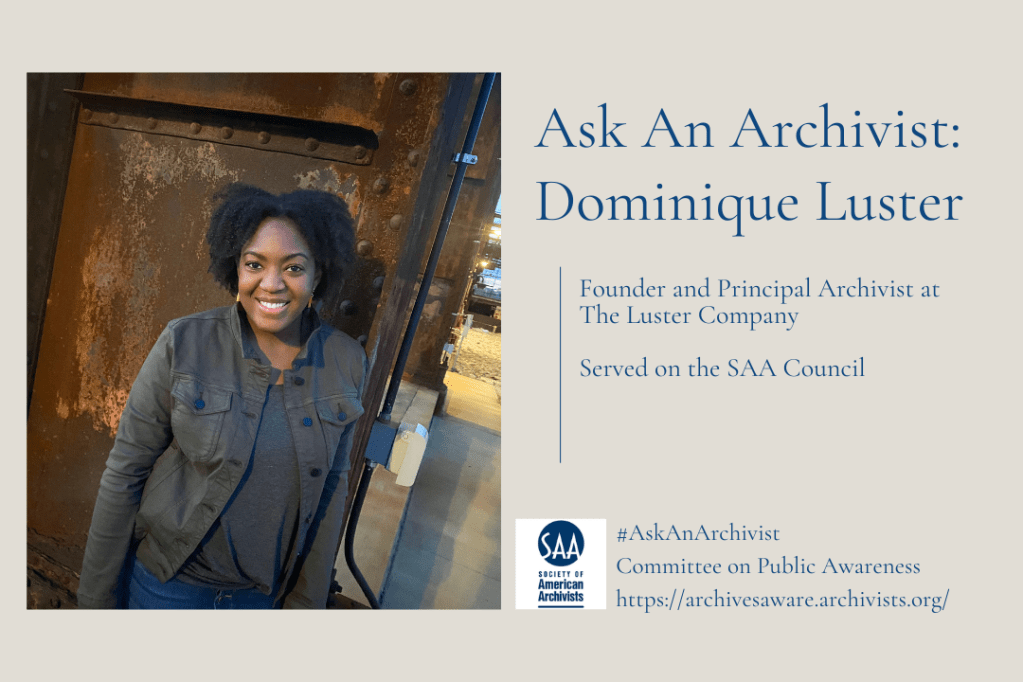 For our second installment of this mini-series, we’re excited to share a conversation with Dominique Luster, Founder and Principal Archivist at The Luster Company. Katherine Barbera of the Committee on Public Awareness sat down with Luster (virtually) for a video conversation on September 2, 2021.