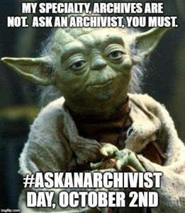 Starting September 30, follow the official hashtag #AskAnArchivist, on Twitter–we’ll keep sharing our memes up until the big day. We hope to see yours as well, and look forward to seeing you on Twitter on October 2nd for this great public outreach opportunity!