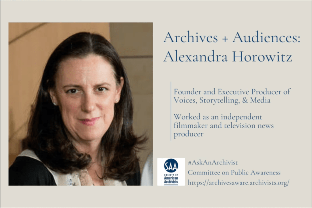 The ArchivesAWARE blog is ran by the Committee on Public Awareness (COPA), under the auspices of the Society of American Archivists. In this installment, Archivist and COPA Member, Rachael Cristine Woody, interviews Alexandra Horowitz and her experiences using oral histories and related archival materials as a writer, filmmaker, and producer.